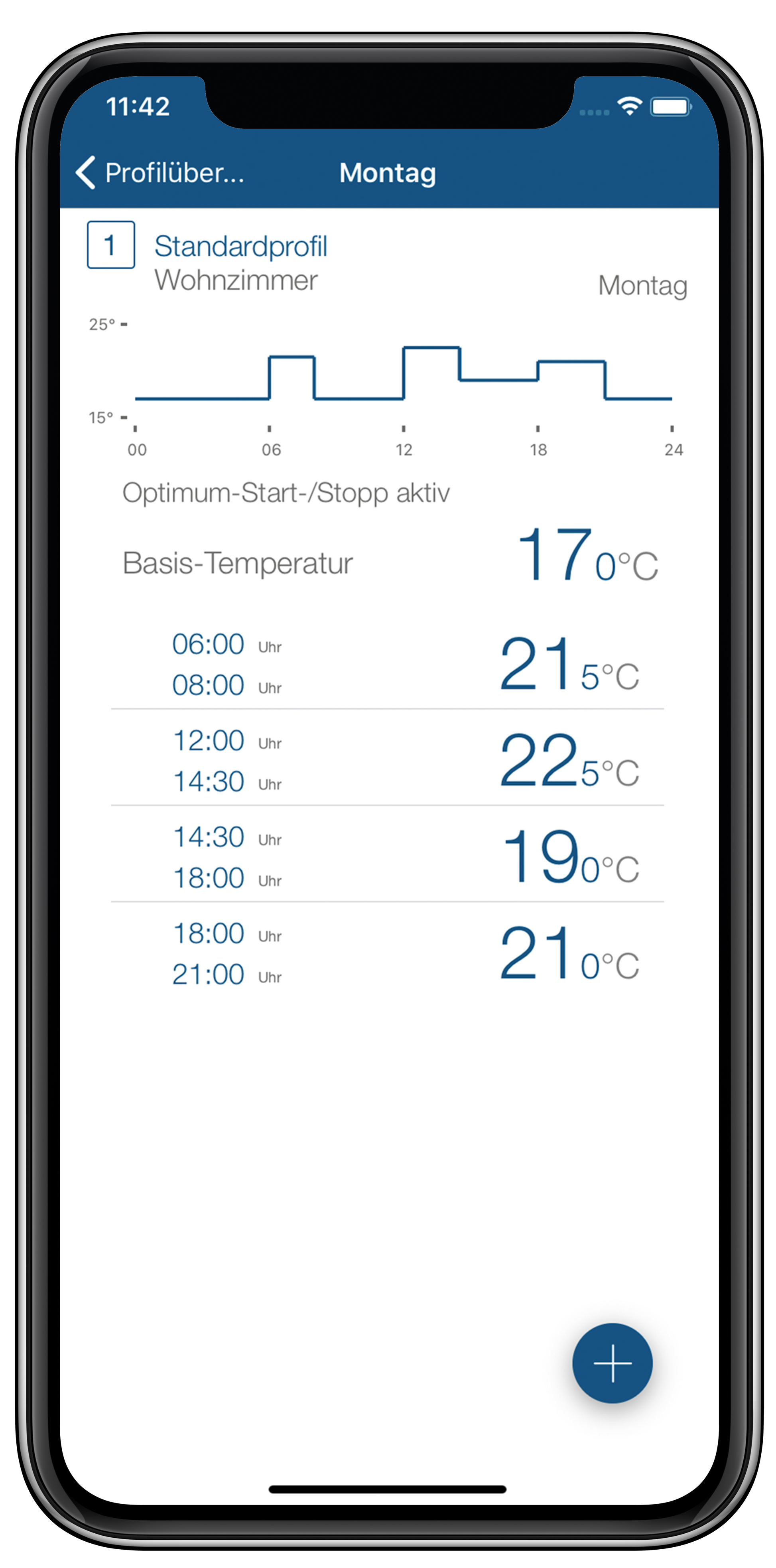 Individuelle Temperaturverläufe mit bis zu 13 Änderungen pro Tag in 3 einstellbaren Heizprofilen.