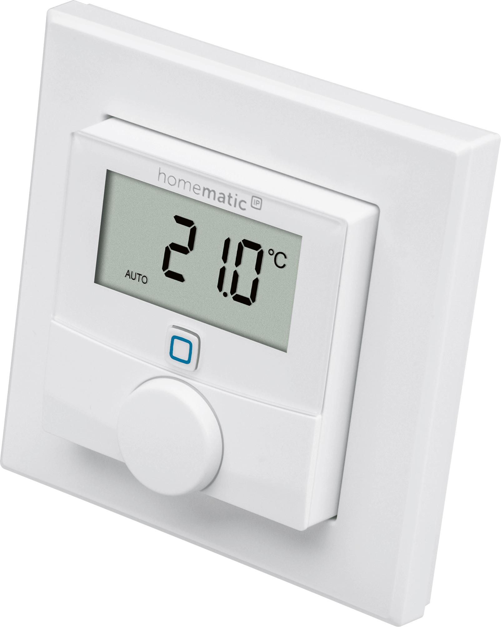 Der Homematic IP Wandthermostat mit Luftfeuchtigkeitssensor ist Teil des Homematic IP Smart-Home-Systems und ermöglicht das direkte Steuern mehrerer Homematic IP Heizkörperthermostate in einem Raum. Zudem ist er zur Steuerung von Homematic IP Fußbodenheizungscontrollern einsetzbar. Dank der Funk-Kommunikation sind Wandthermostat und Fußbodenheizungscontroller ohne das Verlegen von Kabeln miteinander verknüpfbar. Der Einsatz einer Homematic IP Fußbodenheizungssteuerung bietet damit im Vergleich zur herkömmlichen Fußbodenheizungssteuerung einen deutlich geringeren Installationsaufwand und gleichzeitig die Vorteile einer intelligenten Heizungssteuerung auf Raumebene.
