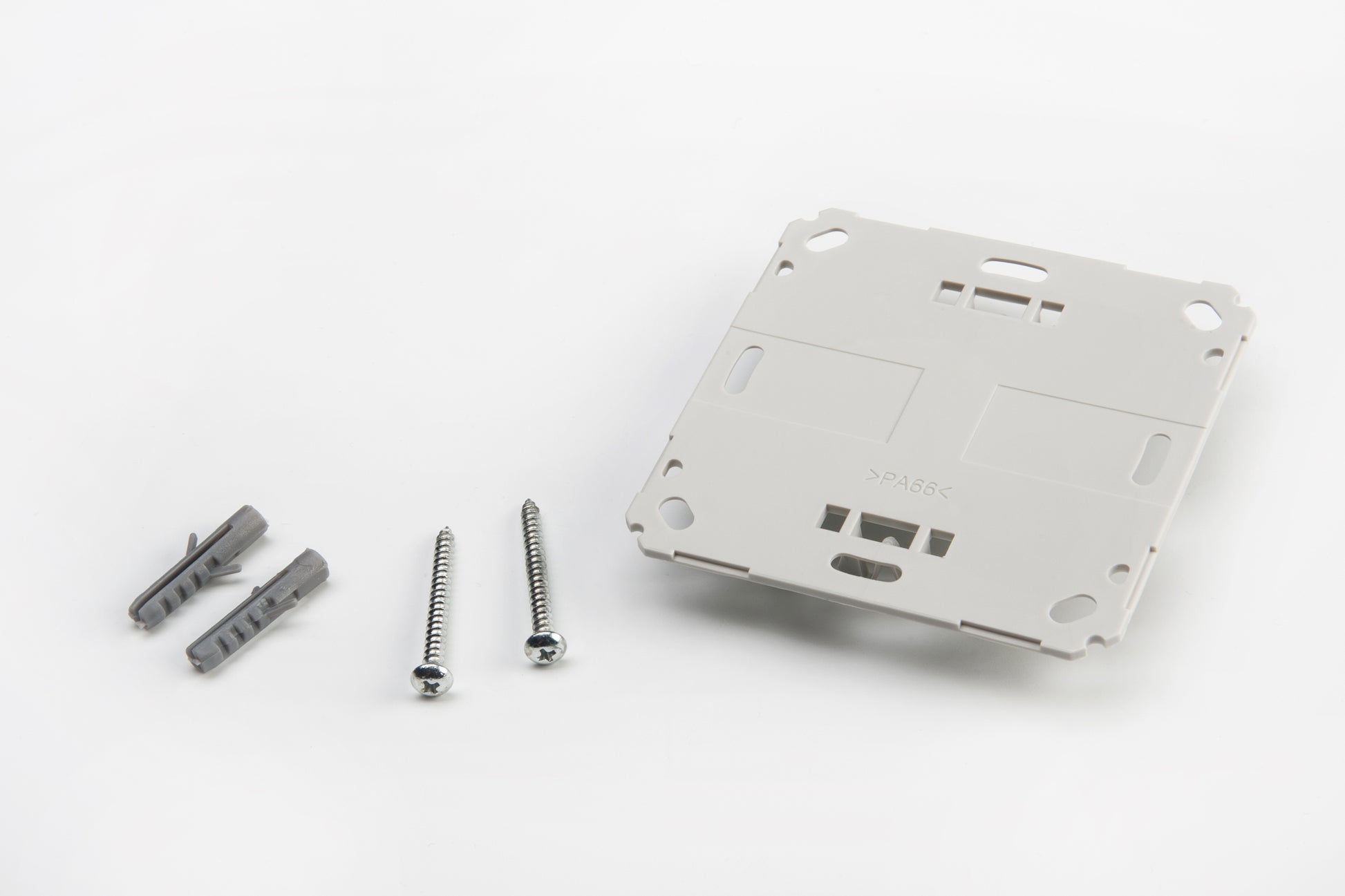 Komfortable Montage per doppelseitigem Klebeband, mit Schrauben und Dübeln oder direkt auf einer Unterputzdose möglich.